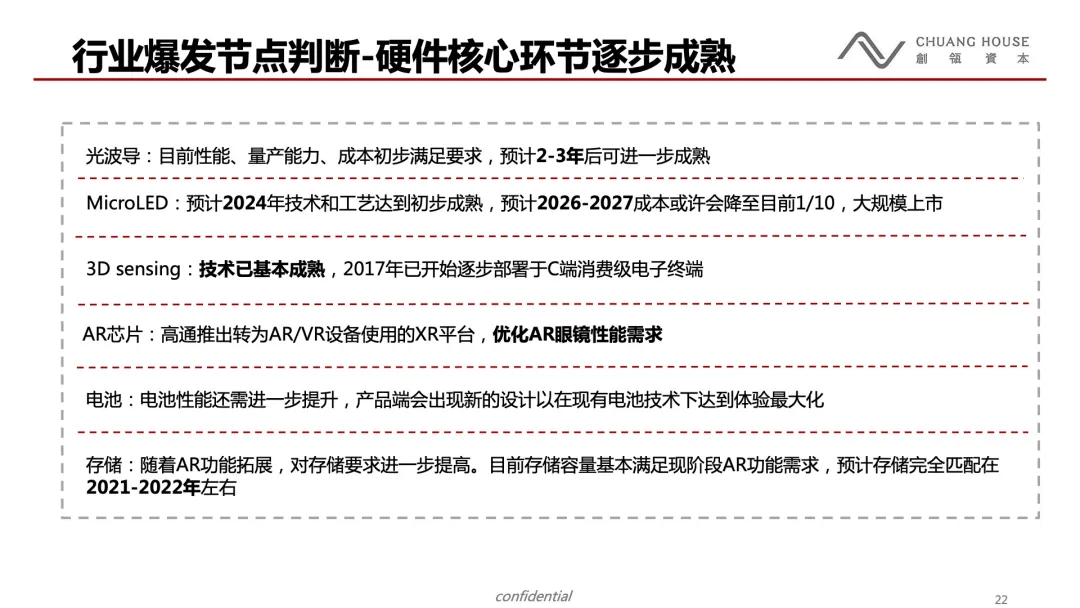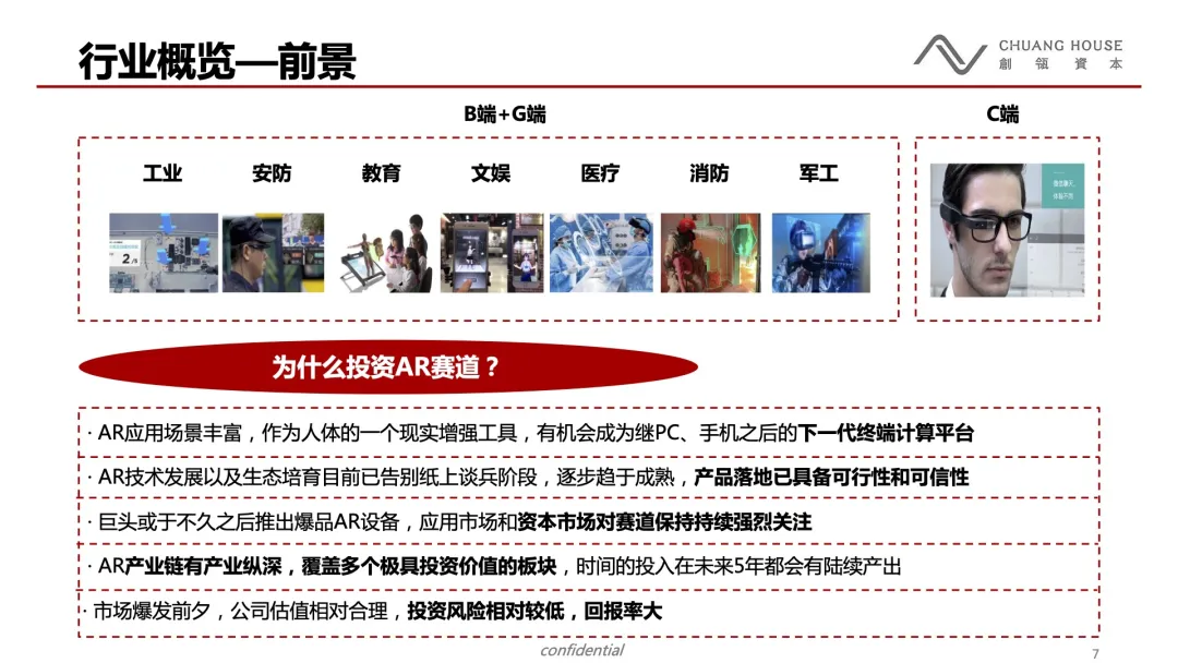 我们认为未来2-3年看B端,3年以后看C端。AR是个产业链有足够纵深的赛道,可以在未来5-10年有持续产出。我们坚定的看好AR未来,陪伴最好的创业公司一起成长。