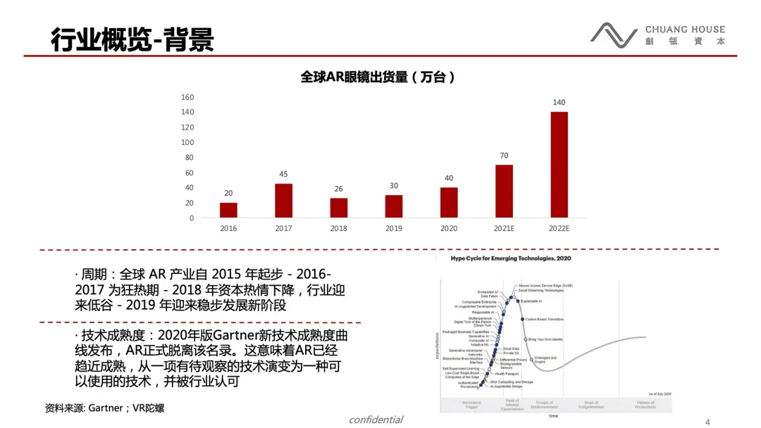 自2012年Google Glass 发布以来,AR行业经历了起起伏伏。虽然大家对AR所带来的想象空间坚信不疑,但AR行业到底何时真正到来却总是扑朔迷离。本文从投资机构关注的视角出发,通过对产业链上下游的走访和深入分析,对AR行业爆发的时间点以及AR行业存在的机会进行深入分析。本文为AR行业研究的上篇,着重分析硬件产业链。
